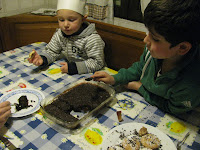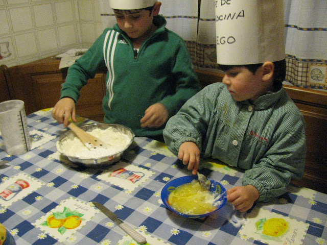 Así que decidido lo que haríamos, empezamos por hacernos unos gorros de cocinero, ya sabéis, con los niños hay que hacer las cosas bien.