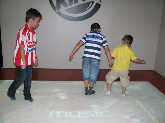 Para empezar deciros que los niños lo pasaron en grande, tanto por la novedad como por el sitio. Tienen un cubo de esos en el que los niños se meten por ellos y luego para salir hay un tobogán (lo cuento así porque no sé como se llama). También tienen una pequeña habitación con un proyector el cual proyecta juegos en el suelo y con el cual los niños interactúan.